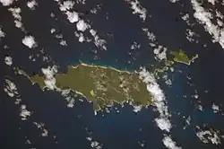 The islands of this archipelago are the visible parts of a range of submerged mountains. It consists of 21 islands, islets and rocks of volcanic origin. The main island has an area of 18 km2 (6.9 sq mi), being 10 km (5.4 nmi; 6.2 mi) long and 3.5 km (1.9 nmi; 2.2 mi) wide at its maximum. The base of this enormous volcanic formation is 756 m (2,480 ft) below the surface. The volcanic rocks are of variable, though mainly silica-undersaturated, character with basanite, nephelinite and phonolite among the lava types found.[37] The main island, from which the group gets its name, makes up 91% of the total area; the islands of Rata, Sela Gineta, Cabeluda and São José, together with the islets of Leão and Viúva make up the rest. The central upland of the main island is called the Quixaba.[38]