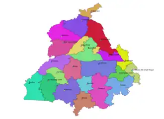 - ^ The Ferozepore district of British India had five tehsils (sub-districts), Firozpur, Zira and Fazilka in the west, and Muktasar and Moga in the east. As of 2025, Fazilka, Muktasar and Moga have been made independent districts, with only Zira and Firozpur tehsils remaining in the rump district.
