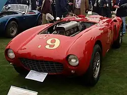 Although intended for the Mille Miglia, the 375 MM was also raced with limited success in the Carrera Panamericana, scoring fourth place in 1953 and finishing second in 1954.[9] Other major successes in 1953 included overall wins at Spa 24 Hours, driven by Giuseppe Farina and Mike Hawthorn duo,[10] 12 Hours of Pescara with Hawthorn and Umberto Maglioli[11] and 12 Hours of Casablanca, won by Farina and Piero Scotti.[12] The 375 MM with Alberto Ascari and Luigi Villoresi, was contesting the 1953 24 Hours of Le Mans alongside its 4.1-litre siblings, to no avail due to a clutch problems.[13] In the 1000 km Nürburgring race of 1953, the 375 MM scored another victory with Giuseppe Farina, this time aided by Alberto Ascari.[14] This race along with Spa 24 Hours counted towards the 1953 World Sportscar Championship, won for Ferrari in due honour to the 375 MM.