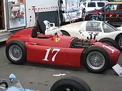 The Lancia D50 was a Formula One racing car designed by Vittorio Jano for Lancia in 1954. The car's design made use of many innovative features, such as the use of the engine as a stressed chassis member, the off-centre positioning of the engine to allow a lower overall height, and pannier fuel cells for better weight distribution and aerodynamics.[3] Six of the cars were built, and two of them are displayed in Italian museums.[5]