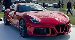 The Ferrari SP America is a one-off coupé based on the F12berlinetta completed in 2014 and developed under Ferrari's Special Projects programme with Pininfarina.[23] It features custom bodywork, including a redesigned hood with three vents, which many reviewers say is reminiscent of the 250 GTO.[24] It also has unique vents on the fenders and slats behind the windows, as well as a redesigned front bumper and redesigned rear end with a large diffuser and an integrated spoiler. The car was commissioned by Danny Wegman, CEO of Wegmans.[25]