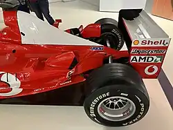 The Ferrari F2003-GA was a highly successful car used by Scuderia Ferrari in the 2003 Formula One World Championship. The chassis was designed by Rory Byrne, Ignazio Lunetta, Aldo Costa, Marco Fainello, Nikolas Tombazis and James Allison with Ross Brawn playing a vital role in leading the production of the car as the team's Technical Director and Paolo Martinelli assisted by Giles Simon leading the engine design and operations.[5] Its development was based on the previous Ferrari F2002, but featured new bulbous sidepods and a lengthened wheelbase to aid aerodynamics. The engine and gearbox were developed versions of the previous model.