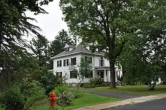 Designed by W. A. Gale, it was built in 1911 and is a 2+1⁄2-story, four-bay-wide, hipped roof Colonial Revival–style building with clapboard sheathing and a stone foundation. It features a three-bay-wide, one-story flat-roofed porch with Doric order columns. Also on the property are a contributing carriage house and playhouse.[2]