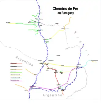 Railroads in Paraguay used steam locomotives until the end of railroad service in 1999.[1] In 1988, The New York Times published an article describing the journey from Buenos Aires, Argentina to Asunción, Paraguay.[2]