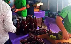 In 2019, 37 tons of grapes were sold during the festival,[2] while in 2020 the event had the prospect of selling 40 tons of grapes, composed of black, white, and pink grapes.[1] The infrastructure was expanded, with a food court and food stalls, food trucks, and breweries,[2] in addition to the already traditional products of the homemade agro-industry based on the fruit, such as cookies, jellies, and sweets,[1] cheese and sausage products, such as salami.[4] In recent years the fair also began to receive a musical program, dances, and cultural presentations.[2][3]