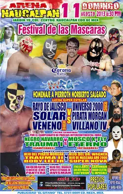 The annual IWRG Festival de las Máscaras ("Festival of the Masks") event is also partly a celebration or homage of lucha libre history with IWRG honoring wrestlers of the past at the events similar to Consejo Mundial de Lucha Libre's (CMLL) Homenaje a Dos Leyendas ("Homage to Two Legends") annual shows. The IWRG's Festival de las Máscaras shows, as well as the majority of the major IWRG shows in general, are held in Arena Naucalpan, owned by the promoters of IWRG and is their main venue. The 2013 Festival de las Máscaras show was the seventh year in a row IWRG held the show.[4][5][6][7][8]