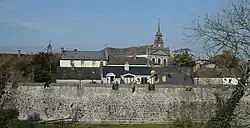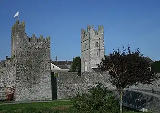 Despite some demolition works, much of the town's defensive walls remain,[9] making it one of the "best example[s] of a medieval walled town in Ireland".[10] In some areas the remaining walls rise to a height of 7.8 metres (26 ft).[10]