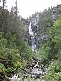 Fettjeåfallet is a waterfall located just west of Klövsjö in Fettjeån (Fättjeån), Jämtland, Sweden. It has a height of about 60 metres (200 ft).[1] It is a popular destination of hikers in the summer and for ice climbing in the winter.