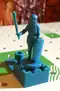 Feudal is won by either capturing your opponent's castle or slaying all of his royalty (i.e. King, Prince, and Duke). Each of the six armies contains a castlepiece, one each of the royalty, one Squire, one Archer, two Knights, two Sergeants, and four Pikemen. The castlepiece has two parts, the castle and the castle green (entrance), each of which takes up one board space. To capture the castle, a figure must first be moved onto the green and wait one turn before moving into the castle proper. A player may defend his/her castle by placing a figure (except the archer or squire) inside.[2]