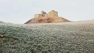 - Edward Stafford, 4th Baron Stafford (1572–1625), buried at the Castle Church, Stafford.[19] During the early phases of the Civil War in 1643 Stafford Castle was held by his widow Lady Isabel Stafford (née Isabel Forster), a staunch Roman Catholic and Royalist. The Parliamentarians had captured the town of Stafford on 15 May 1643, following a brief siege, but some of its garrison escaped and held Stafford Castle, in the hope of using it as a bridgehead to recapture the town.[20] Colonel William Brereton rode up to the castle with some of his men and called upon Lady Stafford to surrender, to which she refused. In response "some of the poor outhouses were set on fire to try whether these would work their spirits to any relenting. All in vain, for from the castle they shot some of our men and horses which did much enrage and provoke the rest to a fierce revenge. Almost all the dwelling houses and outhouses were burnt to the ground." The siege was raised when Colonel Hastings led a relief column which arrived on 5 June. Lady Stafford was eventually persuaded to leave, a small garrison remaining to defend the castle against a renewed siege.