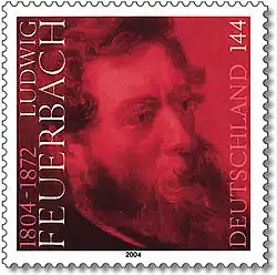 Ludwig Andreas Feuerbach (/ˈfɔɪərbɑːx/;[4] German: [ˈluːtvɪç ˈfɔʏɐbax];[5][6] 28 July 1804 – 13 September 1872) was a German philosopher and anthropologist who was a leading figure among the Young Hegelians. He is best known for his 1841 book, The Essence of Christianity, which argued that God is a projection of the essential attributes of humanity. His critique of religion formed the basis for his advocacy of atheism, materialism, and sensualism. In his later work, Feuerbach developed a more complex theory of religion arising from the human confrontation with nature. His thought served as a critical bridge between the philosophy of Georg Wilhelm Friedrich Hegel and that of Karl Marx.