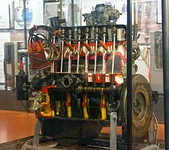 The Fiat 124 series engine was produced in a number of configurations differing in stroke and bore but maintaining a standard bore-spacing. The first model (124 A.000) was near square, using a bore and a stroke of 73 mm × 71.5 mm (2.87 in × 2.81 in) to produce a displacement of 1.2 L (1,197 cc). A larger 1.4 L (1,438 cc) version arrived in October 1968, in the 124 Special. This has an 80 mm (3.15 in) bore.[2] The bore was increased to 76 mm (2.99 in) to give a displacement of 1.3 L (1,297 cc) for the 131, which was also available in a 1.6-litre version with a 84 mm (3.31 in) bore. A variety of other bores and strokes were available. Several of the Brazilian Fiasa engines share their bore and stroke with the 124 series engines and were sometimes used in the same cars, but the engines are not related.