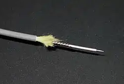 The single mode fibre cables use an 8μm fibre armoured with a steel wrap and Kevlar strands inside a plastic jacket. Fibre cable cannot be easily joined (an expensive fusion splicer is required for reliable joints) but pre-made cables with FC type screw-on connectors (mechanically similar in use, but smaller, to the F-connectors used for electrical satellite IF) are available in lengths from 1m to 100m. The same connectors are used on all the optical components of a system, including the optical LNB, splitters, cable joiners, virtual LNB units, etc.