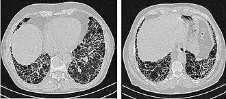 23. ^ Raghu G, Remy-Jardin M, Myers JL, Richeldi L, Ryerson CJ, Lederer DJ, et al. (September 2018). "Diagnosis of Idiopathic Pulmonary Fibrosis. An Official ATS/ERS/JRS/ALAT Clinical Practice Guideline". American Journal of Respiratory and Critical Care Medicine. 198 (5): e44 – e68. doi:10.1164/rccm.201807-1255ST. PMID 30168753. S2CID 52130702.