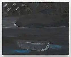 And large histories, beyond the personal, are ever-present in his art. These include repeated references to the Middle Passage of the trans-Atlantic slave trade. In a few cases the subject of exile is directly named, yet it can be read obliquely everywhere in the show. Taken together, two small pictures, one of an unmanned boat, the other of a soaring seabird, might be asking: What is the difference between being cut adrift and flying free? -- Holland Cotter in the New York Times, 2020.[12]