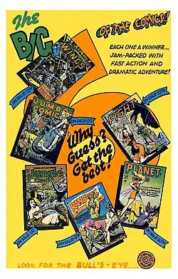 ![]() House ad for "The Big 6 of the Comics!" advises, "Look for the Bull's-Eye..... Fiction House Magazines". | |