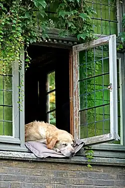 Fidèle (Fidel in English) (May 2003–January 2016)[1] was a famous dog and tourist attraction in Bruges, Belgium. The Yellow Labrador Retriever lived at the Côté Canal bed and breakfast with his owner, Caroline Van Langeraet. He could usually be seen lounging half-asleep on a windowsill facing the Groenerei canal;[2] Langeraet says that it was his favorite spot for years, in all seasons.[3] Tour boats on the canal often paused specifically to allow the passengers to take Fidèle's picture.[4] According to Langeraet, American tourists sent the dog fan mail and parcels with toys.[3]
