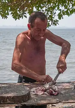 Field dressing, also known as gralloching[1] (/ˈɡræləkɪŋ/ GRA-lə-king), is the process of removing the internal organs of hunted game, and is a necessary step in obtaining and preserving meat from wild animals such as deer. Field dressing is often done as soon as possible after the animal is killed to ensure rapid body heat loss, which prevents bacteria from growing on the surface of the carcass. Field dressing also aids hunters in transporting hunted game by lightening the weight of the carcass.