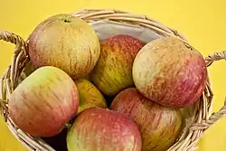 Fiesta is a modern cultivar of domesticated apple which is often marketed as Red Pippin. It was developed in the United Kingdom by breeders at the East Malling Research Station, combining the Cox's Orange Pippin with the Idared apple. According to the Orange Pippin website, it is one of the best Cox's style apples, but much easier to grow having good disease resistance.[1][2][3]