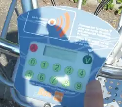 The lock can be either mechanical or electronic. The mechanical lock is based on the distribution of an RFID-tagged key from a pillar box dispenser. The electronic lock relies on an RFID reader on the bicycle, together with a keyboard for casual users. A long-term member will simply flash the member card on the bike to unlock it while the casual user will purchase a code, by internet, SMS, at a counter, or from a credit-card pillar dispenser. One idea is to share costs of payment methods and of street furniture with other existing systems such as car park ticket machines or public transport ticket systems, which can host the radio relay server.