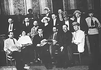 Just then Trotsky or Vladimir Ilyich phoned – I don't remember – and said that Latsis should remain in the All–Russian Extraordinary Commission, while I, along with others, should went to the Bolshoi Theater and arrested a faction of Left Socialist Revolutionaries. We went to the theater... Some of us went on stage, announced that the Bolshevik faction was going to gather, and that all the Bolsheviks should leave the theater. At the exits, we set up a document check and at first released only communists. But, of course, very soon this cunning was discovered by the Socialist Revolutionaries and others, but they did not react to it... Then we began to start up according to recommendations, according to documents. In the end, Left Socialist Revolutionaries, Internationalists and non–partisans remained in the theater. I remember that some of them were worried, asked what this meant, since they did not know the situation.[3]