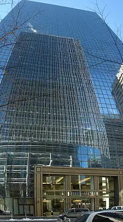 Fifth Avenue Place is a high-rise skyscraper complex in Calgary, Alberta, Canada. It was originally called Esso Plaza. It occupies the entire area of a city block, between 4th and 5th Avenue South and 1st and 2nd Street West in Downtown Calgary.