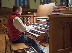 In 1884, the joint funerals of the mother of President Theodore Roosevelt and of his first wife, Alice, were held here. In 1910, the church's historic sanctuary was the site of the wedding of TR's son, Theodore Roosevelt Jr., an event attended by the former president, and 500 of his former Rough Riders.[6] It was also the site of the 1965 recording of A Concert of Sacred Music by Duke Ellington and his orchestra, broadcast nationally by CBS television in 1966,[7] and of dance legend Frankie Manning's "rollicking three-hour memorial service" in 2009.[8]