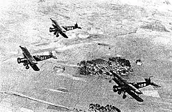 On 19 April, the Red Army launched a counterattack against Nationalist positions at Daluo Mountain , but was repelled with significant losses. Meanwhile, the Nationalist Air Force played a growing role in the campaign. From 21 April onward, aircraft from the 1st, 2nd, and 3rd Bombing Groups, along with a reconnaissance squadron, were deployed to support ground operations. These units carried out aerial reconnaissance and bombed key Communist positions around Guangchang, including Changsheng Bridge (Chinese: 長生橋), Qianshan Street (Chinese: 千善街), Daluo Mountain , and Huagai Peak (Chinese: 華蓋尖). Over 1,000 bombs were dropped, and more than 100,000 rounds of machine-gun fire were expended.[10]