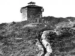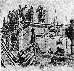 Between 1933 and the autumn of 1934, the Nationalist Army reportedly constructed 14,294 blockhouses across the front, with the highest concentration around Fuzhou. A defensive line was formed stretching some 400 kilometres from the eastern boundary of Lichuan to the western approaches of Ji'an and Jizhou, sealing off key transport routes into the Jiangxi Soviet. In eight counties alone— Yihuang, Nancheng, Le'an, Lichuan, Jinxi, Chongren, Zixi, and Nanfeng—over 2,000 blockhouses were established.[9]