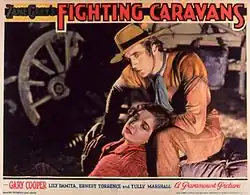 Fighting Caravans is a 1931 American pre-Code Western film directed by Otto Brower and David Burton and starring Gary Cooper, Lili Damita, and Ernest Torrence.[1] Based on the 1929 novel Fighting Caravans by Zane Grey, the film is about a young frontier scout who helps guide a freight wagon train across the country, fighting off Indians and evil traders, while his two crusty companions try to save him from falling in love. Although billed as being based on the Zane Grey novel, the stories have little in common. The film was actually written by Agnes Brand Leahy, Edward E. Paramore, Jr., and Keene Thompson.[1]