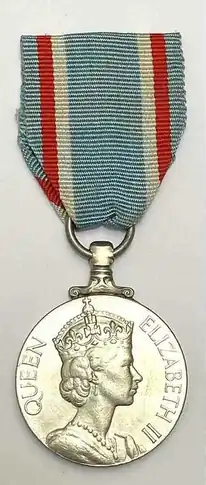 The Fiji Independence Medal was authorised by Queen Elizabeth II on the occasion of the granting of independence to Fiji to give recognition to individuals of the Armed Forces, Police Force, Prison Service, Aerodrome Fire Service, Forest Guards who were serving on the 10 October 1970 and members of the Civil Service and other residents of Fiji who have rendered outstanding public service.[1]