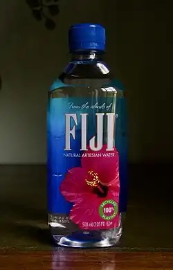 Fiji Water is a brand of bottled water owned by the American conglomerate The Wonderful Company. According to marketing materials, the water comes from an artesian aquifer in Viti Levu.[5] Fiji Water is headquartered in Los Angeles, California.[5]