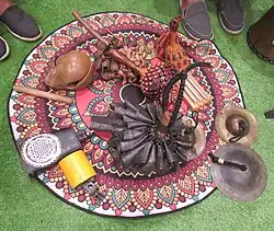 Santos also notes that the majority of these musical performances involve "the participation of the community or audience" and with "dancing and some form of physical movement." The notable exception is in instances of solo playing or small group singing, which do not necessarily involve much physical movement.[1]
