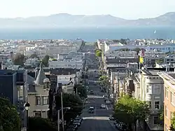 Fillmore Street, named after American President Millard Fillmore, was first designated when San Francisco's Western Addition was platted in the 1860s. In the 1880s, the area acquired the name "The Fillmore".[1] Streetcar service on Fillmore started in July 1895; the following month the Fillmore Counterbalance was installed to traverse the steep 24.54% grade of Pacific Heights between Green and Broadway.[2]