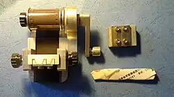 A film slitter, sometimes also called film splitter, is a device used in subminiature photography to slit 135 or 120 roll film into 16mm film or Minox film for use in subminiature cameras.[1] [2]