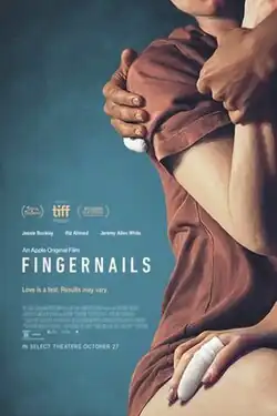 Fingernails is a 2023 science fiction romantic drama film directed and co-written by Christos Nikou. The film stars Jessie Buckley, Riz Ahmed, Jeremy Allen White, and Luke Wilson. Cate Blanchett serves as one of the film's producers. The film follows a woman who starts working at an institute that tests whether the love between two people in a couple is real.