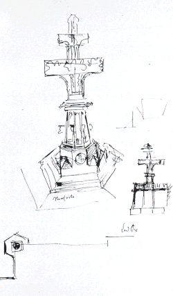 Cathedral master builder Richard Voigtel had already originally striven for the production of a third finial as a "monument to the completion of the cathedral". In a sketch and design from 1879, he envisaged a 10.5-metre-high replica of the finials to be erected on the south-eastern corner of the cathedral terrace. However, Voigtel could not prevail with this idea.[3]