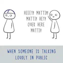 Finnish Nightmares is an English-language stick figure webcomic initially developed by Korhonen with the goal of entertaining herself and her friends.[1] The cartoon stars Matti, a socially awkward character who prefers minimal contact and avoids social situations. Korhonen describes the character as "a stereotypical Finn who appreciates peace, quiet and personal space. Matti tries his best to do unto others as he wishes to be done unto him: to give space, be polite and not bother with unnecessary chit chat." The character comes across as perpetually uncomfortable who hides from his neighbors and hates being singled out. Korhonen wrote on her blog that some traits associated with introversion are part of Finnish culture and code of conduct, such as giving others a large amount of personal space. Ephrat Livni of Quartz noted that Matti seems introverted even by Finnish standards.[2]