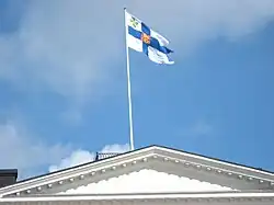 The national flag of Finland, also known in Finnish as the Siniristilippu ('Blue Cross Flag') and the Sinivalkolippu ('Blue-and-White Flag'), dates from the beginning of the 20th century. On a white background, it features a blue Nordic cross, which represents Christianity.[1][2][3][4][5]