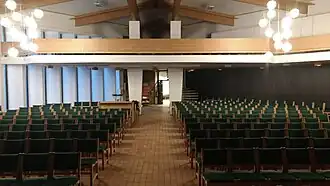 Finnsnes Church (Norwegian: Finnsnes kirke) is a parish church of the Church of Norway in Senja Municipality in Troms county, Norway. It is located in the central part of the town of Finnsnes. It is a church in the Lenvik parish which is part of the Senja prosti (deanery) in the Diocese of Nord-Hålogaland. The white, brick church was built in a fan-shaped style in 1979 using plans drawn up by the architect Nils Toft. The church seats about 750 people. The building was consecrated by Bishop Kristen Kyrre Bremer.[1][2][3]
