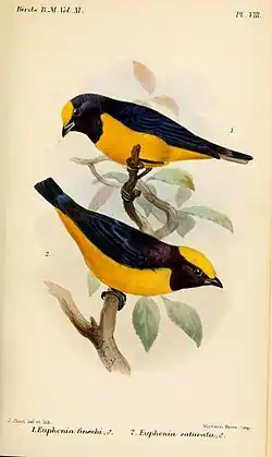 | Finsch's euphonia (top), illustration by Joseph Smit, 1886 | |