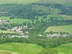 The village of Fintry sits by the Endrick Water in a strath between the Campsie Fells and the Fintry Hills.[2]