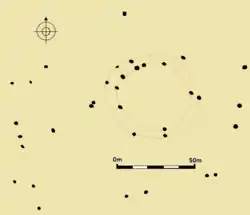 - ^ In his 2000 book The Stone Circles of Britain, Ireland and Brittany, Burl stated that the circle had measured 115 metres (377 ft) by 94 metres (308 ft).[10] He later retracted this as an error based on his calculations drawn from a photocopy of the original site plan provided to him by the National Monuments Record.[13]