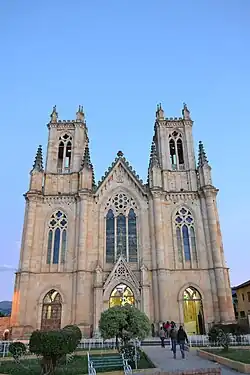 Firavitoba's church was officially completed in 1976, just over one hundred years after work began.[19] The consecration of Nuestra Señora de las Nieves was performed by the Archbishop of Tunja, Augusto Trujillo Arango. It is the third largest church in Colombia, built entirely of stone in the neo-Gothic style, and is a main feature of the municipality.[25]