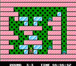 The game's main story features 10 worlds, each with 10 stages to complete. The Japanese release includes an internal save battery, allowing players to save their progress, while the English releases instead features a password system. Upon completing all 100 stages and defeating Druidle, a cheat code is presented that unlocks a sound test option and 50 additional bonus stages. The game also features a stage editor, allowing players to design their own stages and puzzles, but only the Japanese version allows players to save their created stages.