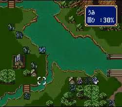 When combat is initiated, a separate screen shows the battle play out: attack power is based on the strength of weapons and their units, while damage is calculated based on both the type of attack used and the opposing unit's physical and magical defense. Critical hits triple the damage of normal attacks.[3][5] Each battle awards experience points, which raise a unit's experience level: their level and statistics cap at 20. When a character changes class, their experience level returns to 1 while their stats increase slightly.[3][6] Unit abilities can be influenced through a Support system: when two characters have a story-based relationship such as being lovers or friends, they boost stats such as attack power or dodging ability.[7]