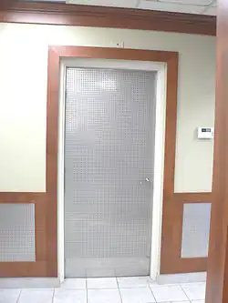 In the United States, wire glass must pass the requirements of 16 CFR 1201 and be "labeled" to be used in a door. Laminate and ceramic glasses are now more likely to be used, as they more readily meet the requirements of 16 CFR 2101.