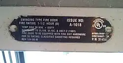 - ^ "GSNN.SP-2-003 - Fire Door Assemblies and Window Assemblies". Database.ul.com. 2011-04-22. Retrieved 2013-05-17.