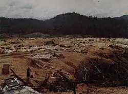 Firebase Bastogne, like most other support bases in Thừa Thiên Province, came under intense fire during the Easter Offensive of 1972. On 9 April a PAVN attack on the base was defeated for the loss of 182 PAVN and nine ARVN, however 14 M113 armored personnel carriers were destroyed in the fighting on Route 547.[3] The ARVN then withdrew the four M107s at the base to Camp Eagle and moved the 54th Regiment's headquarters from the base to Firebase Birmingham, 6km to the east.[4] The PAVN then laid siege to the base and on 11 April lost 102 killed as an ARVN armored column tried for the third day to relieve the base.[5] By 12 April the base was running low on food and ammunition and PAVN fire prevented helicopters from evacuating more than 100 wounded at the base.[4] On 13 April after two B-52 strikes around the base, the ARVN relief force reported finding 210 PAVN dead.[6] On 18 April ARVN relief forces reported approximately 400 PAVN and 21 ARVN killed in fighting 4 miles (6.4 km) east of the base.[7] The PAVN began a renewed attack on the base on 28 April and succeeding in overrunning it on 29 April with the survivors withdrawing east to Firebase Birmingham.[8]