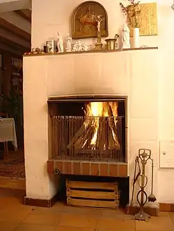 By the 1800s, most new fireplaces were made up of two parts, the surround and the insert. The surround consisted of the mantelpiece and side supports, usually in wood, marble or granite. The insert was where the fire burned, and was constructed of cast iron often backed with decorative tiles. As well as providing heat, the fireplaces of the Victorian era were thought to add a cosy ambiance to homes.[6] In the US state of Wisconsin, some elementary classrooms would contain decorated fireplaces to ease children's transition from home to school.[7]